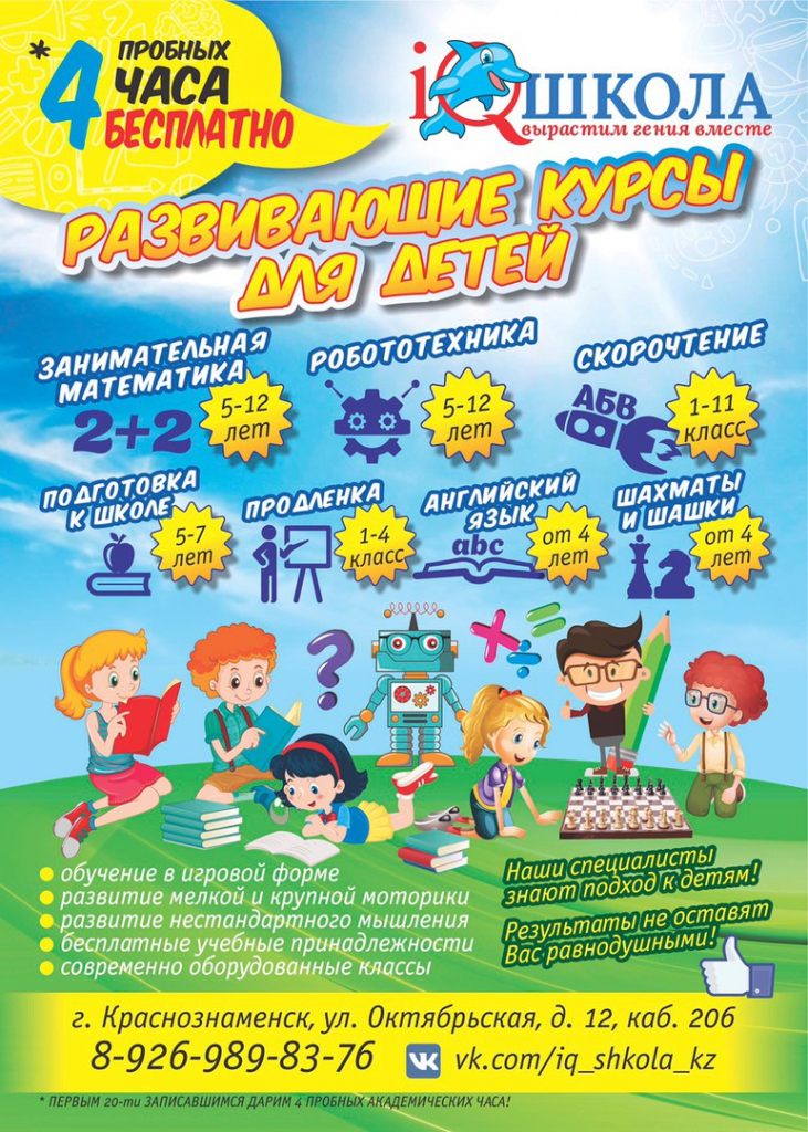 25.06.2019 Студия английского языка “iQ-School” в городе КРАСНОЗНАМЕНСК объявляет набор на новый учебный год.