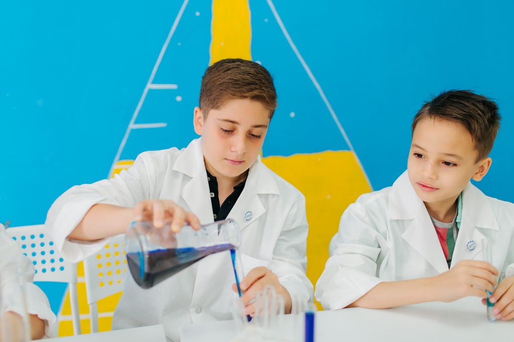 Вместе с преподавателем разбираются в сути явлений и процессов, обращаются к таблице Д.И.Менделеева, говорят о различных веществах и их свойствах - всё это в доступной игровой форме по ходу проведения опытов!