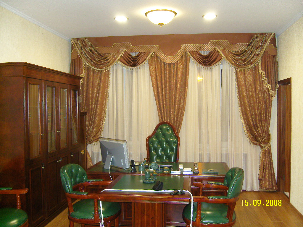 "Студия штор" представляет постоянно обновляющийся ассортимент тканей из Европы, а также широкий выбор карнизов, рольштор и жалюзи.
