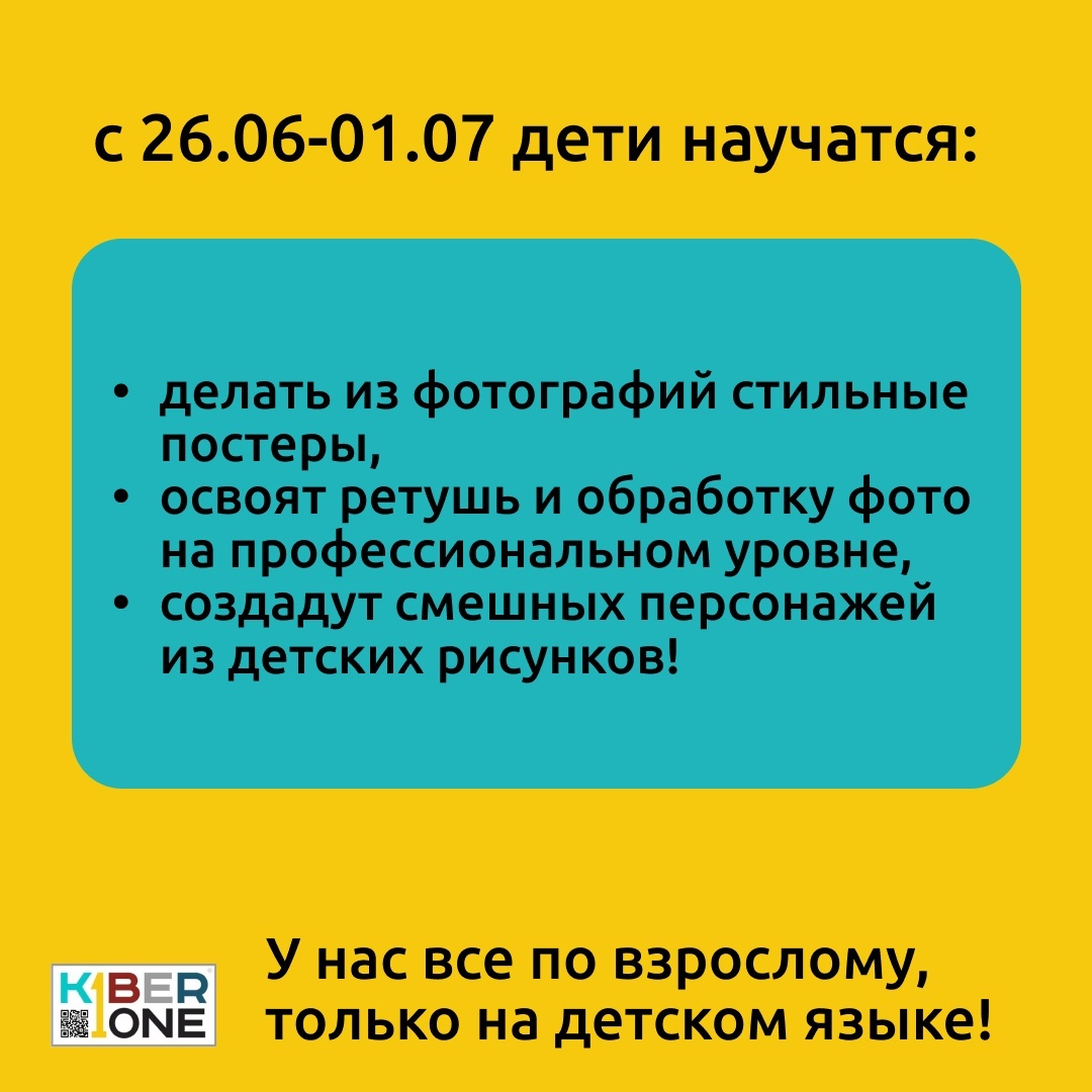 8-14 лет присоединиться к самому творческому модулю Кибер Каникул «ФотоАрт»!⠀