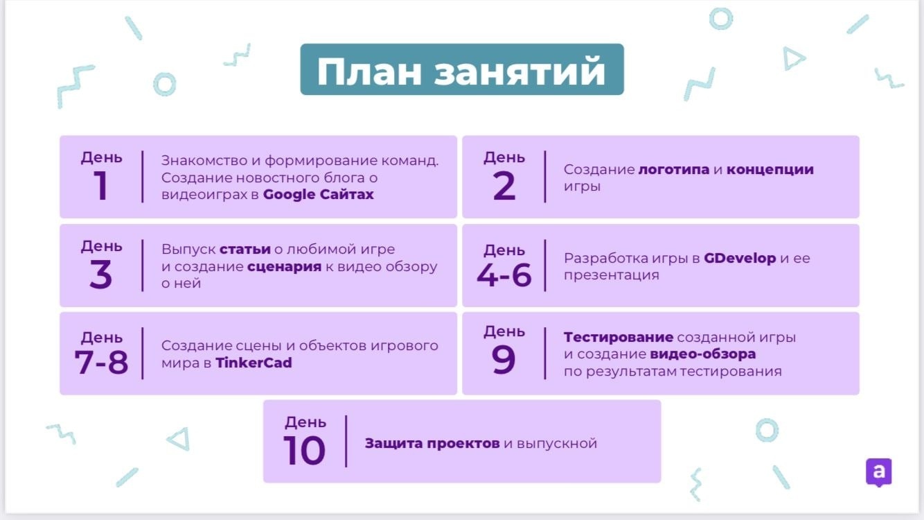 Летние смены — это 10 дней работы над креативными digital-проектами: съемки видео, профессиональный монтаж, ведение новостного блога, создание игр и проработка 3D-персонажей.