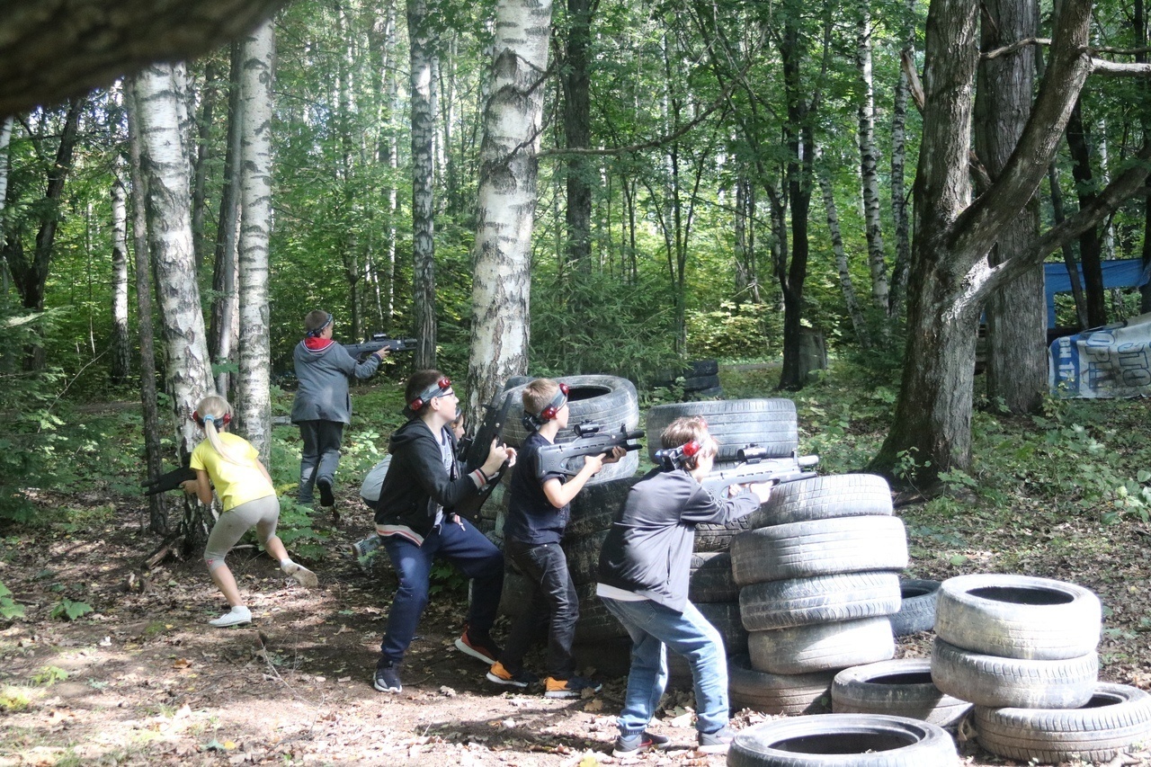 - Активные игры на свежем воздухе: пейнтбол, лазертаг, тимбилдинг с квестом, веревочный парк «Приключения Тарзана»;