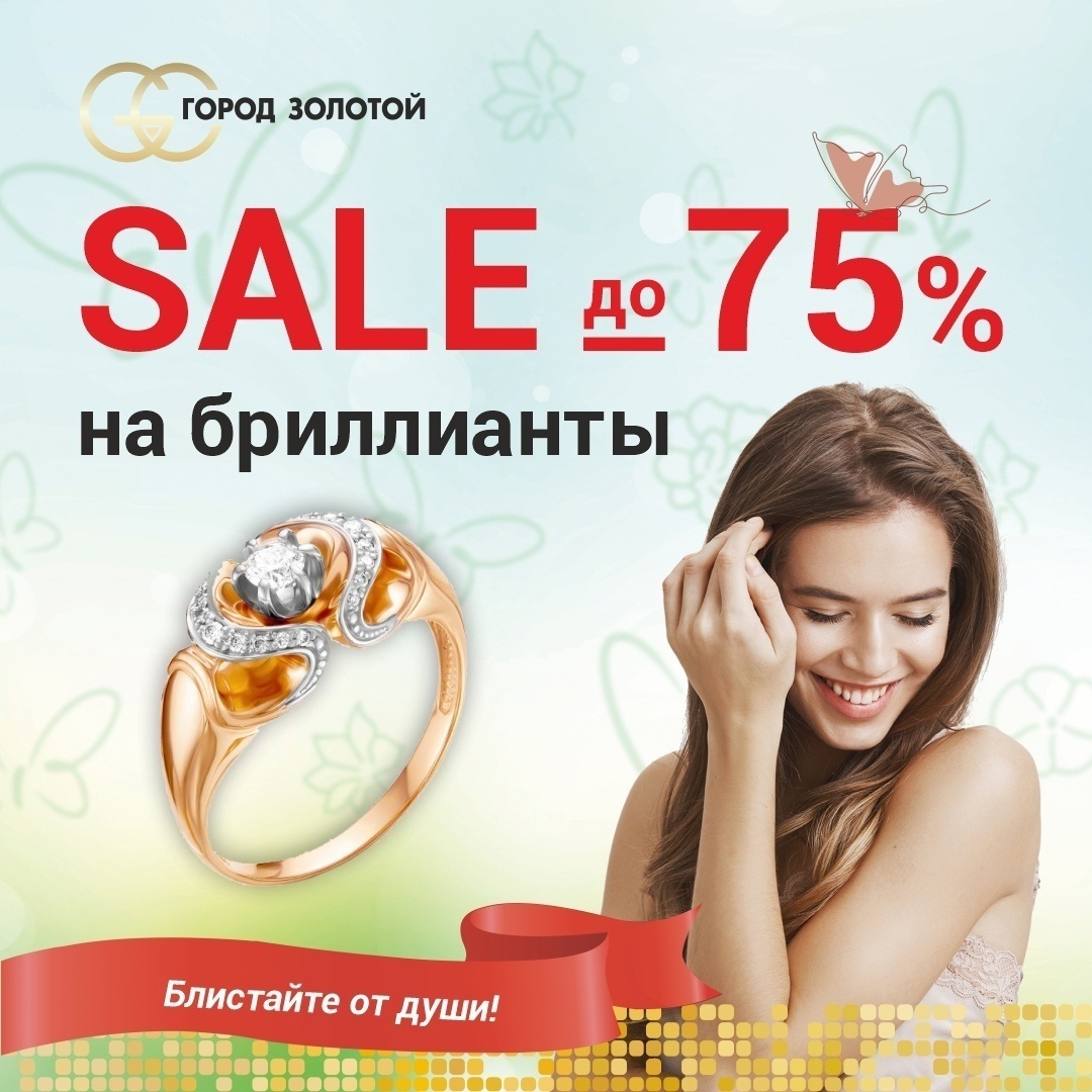 СКИДКИ до 75% на бриллианты! Забери ВЫГОДУ! Всем держателям Дисконтных Карт сети салонов Город Золотой!