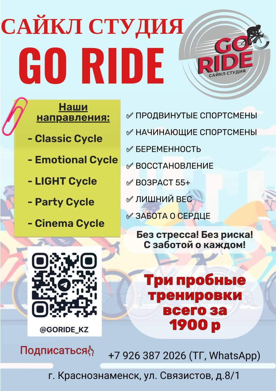 Сайкл студия «GO RIDE» — ФИТНЕС НОВОГО ПОКОЛЕНИЯ!