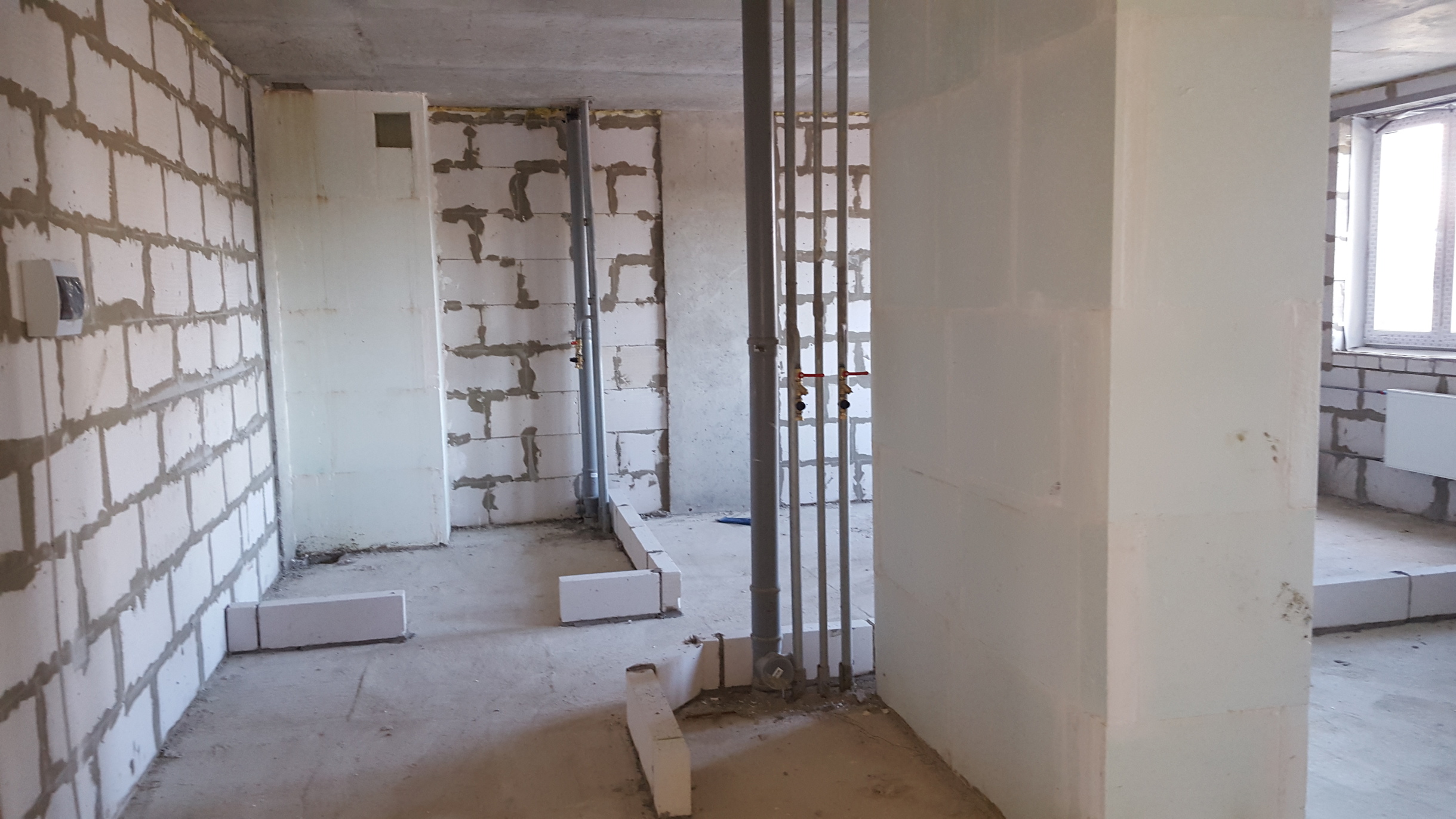 Начаты работы по секции № 1 по устройству «маячных» рядов в квартирах, для обозначения перегородок.