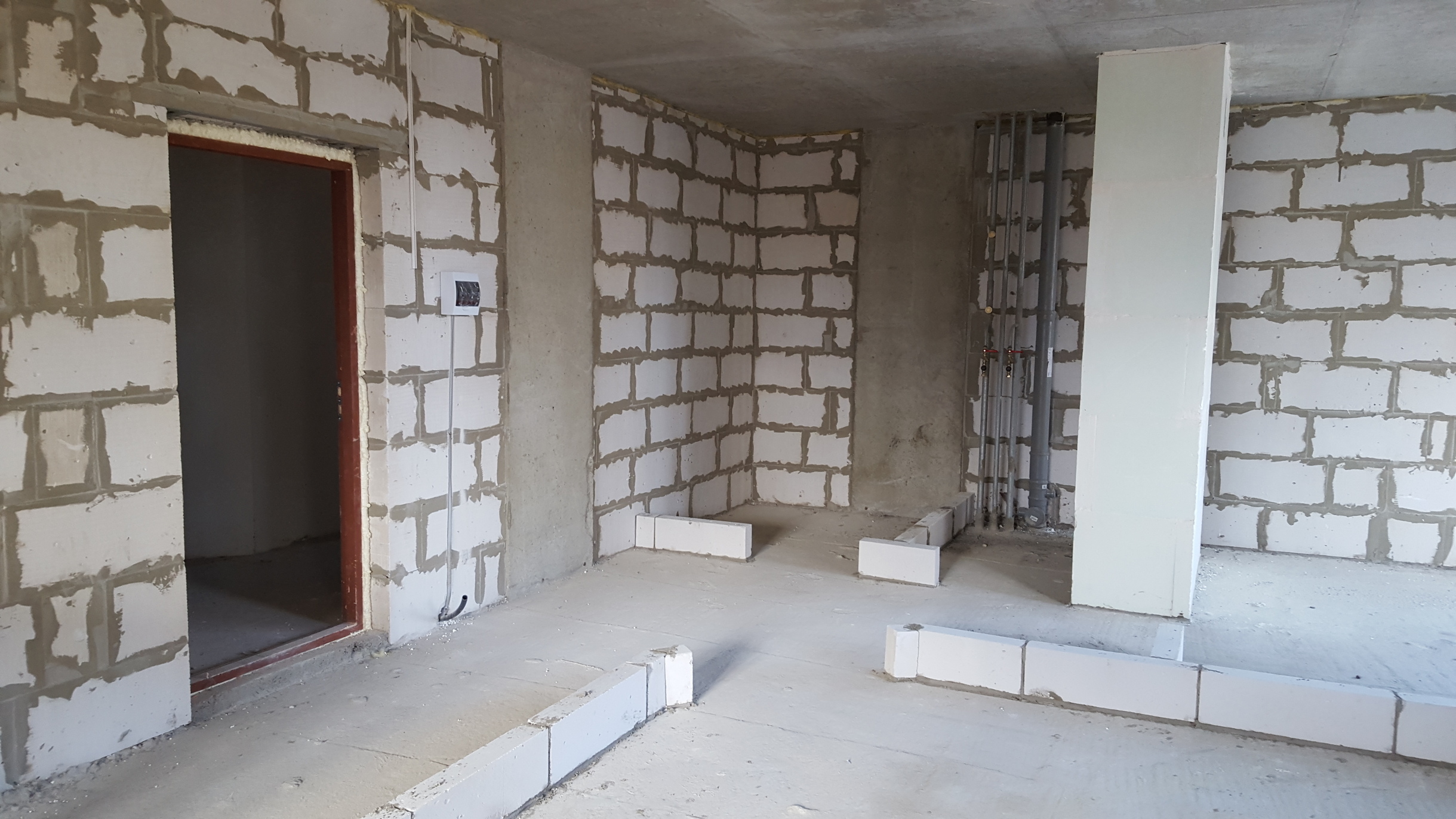 Ведутся работы по секции № 1 и № 2 по устройству «маячных» рядов в квартирах, для обозначения перегородок.