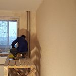 Ведутся работы по наклейке обоев в муниципальных квартирах.