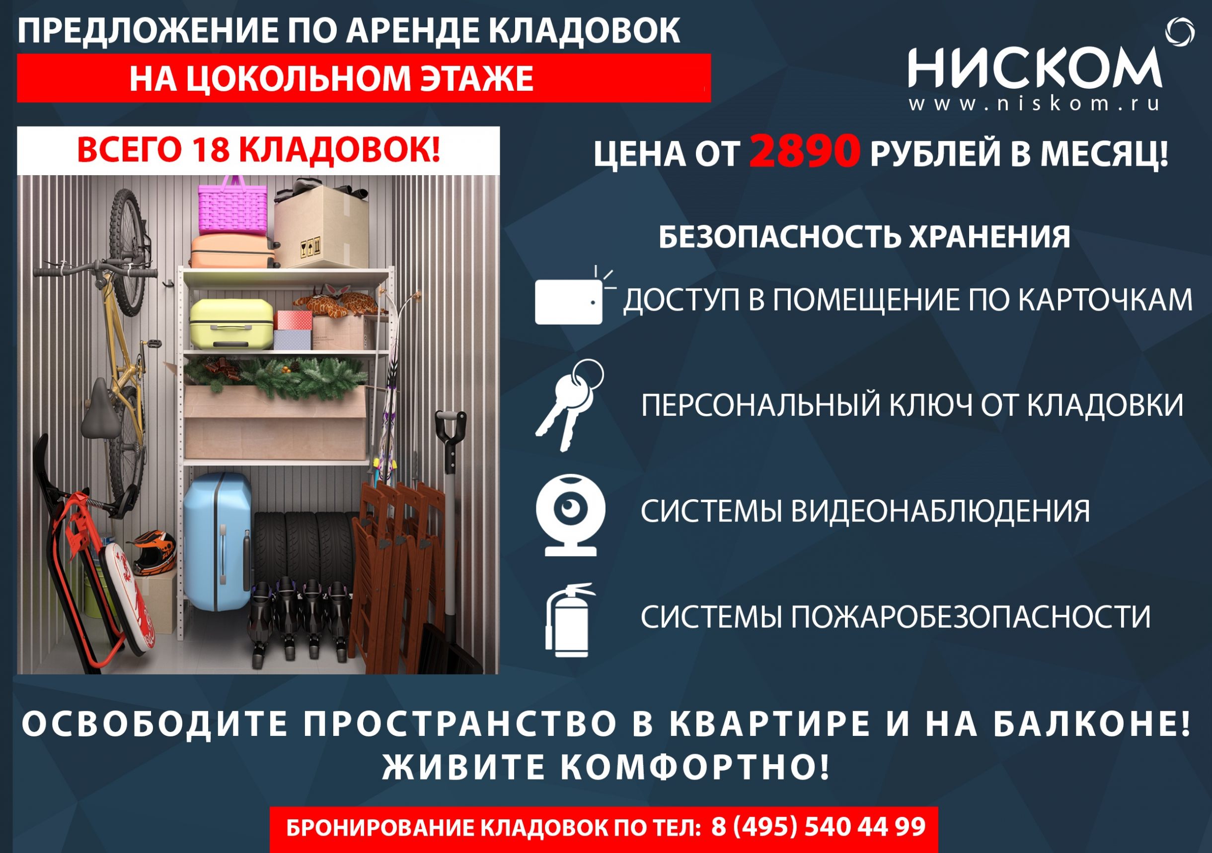 Спешите забронировать свою кладовку для хранения вещей по тел. 8 (495) 540 4499