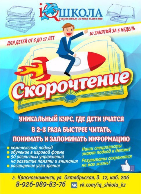 Запись в НОВУЮ группу по Скорочтению началась (7-9 лет).