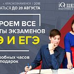 В новом 2018-2019 учебном году «iQ-центр» приглашает всех желающих принять участие в наших АКЦИЯХ по эффективной подготовке к ЕГЭ и ОГЭ! Мы приготовили много ИНТЕРЕСНЫХ и БЕСПЛАТНЫХ мероприятий ВСЕМ ЗАПИСАВШИМСЯ, которые будут проходить с 15 августа. Наша команда поможет ВАМ сделать верный выбор и достойно сдать экзамены!