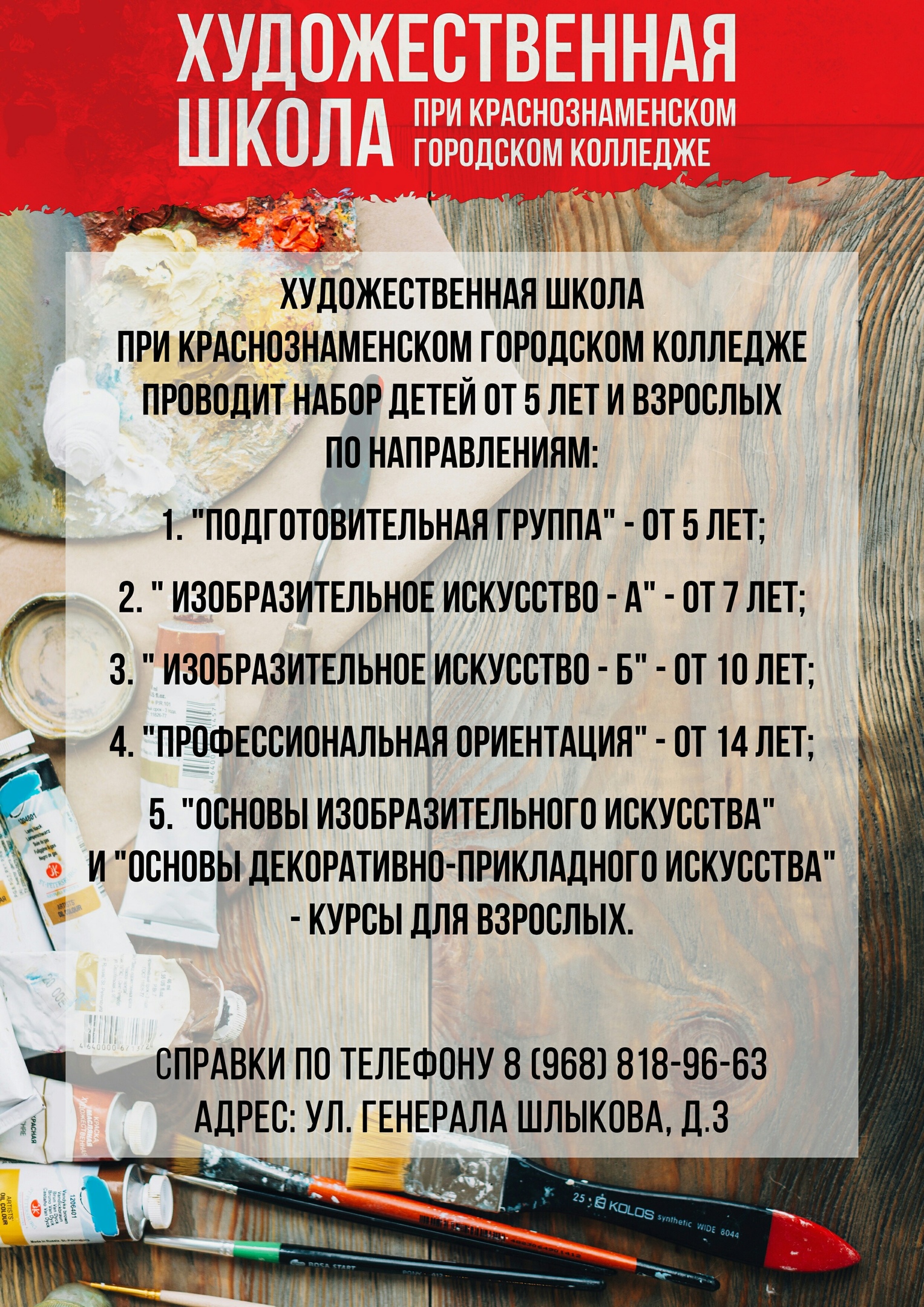 Художественнаяснознаменском городском колледже проводит набор детей от 5 лет и взрослых по направлениям: