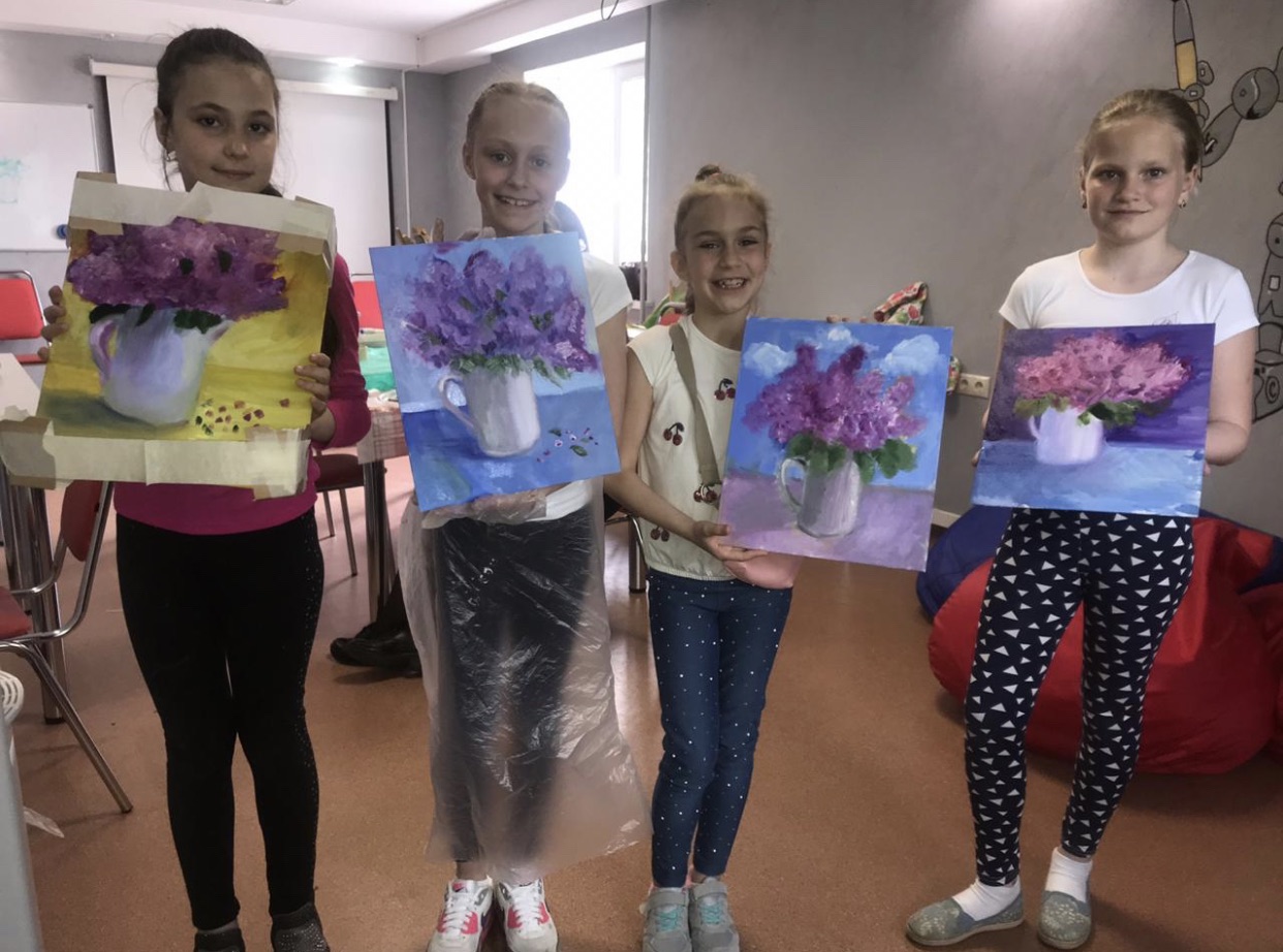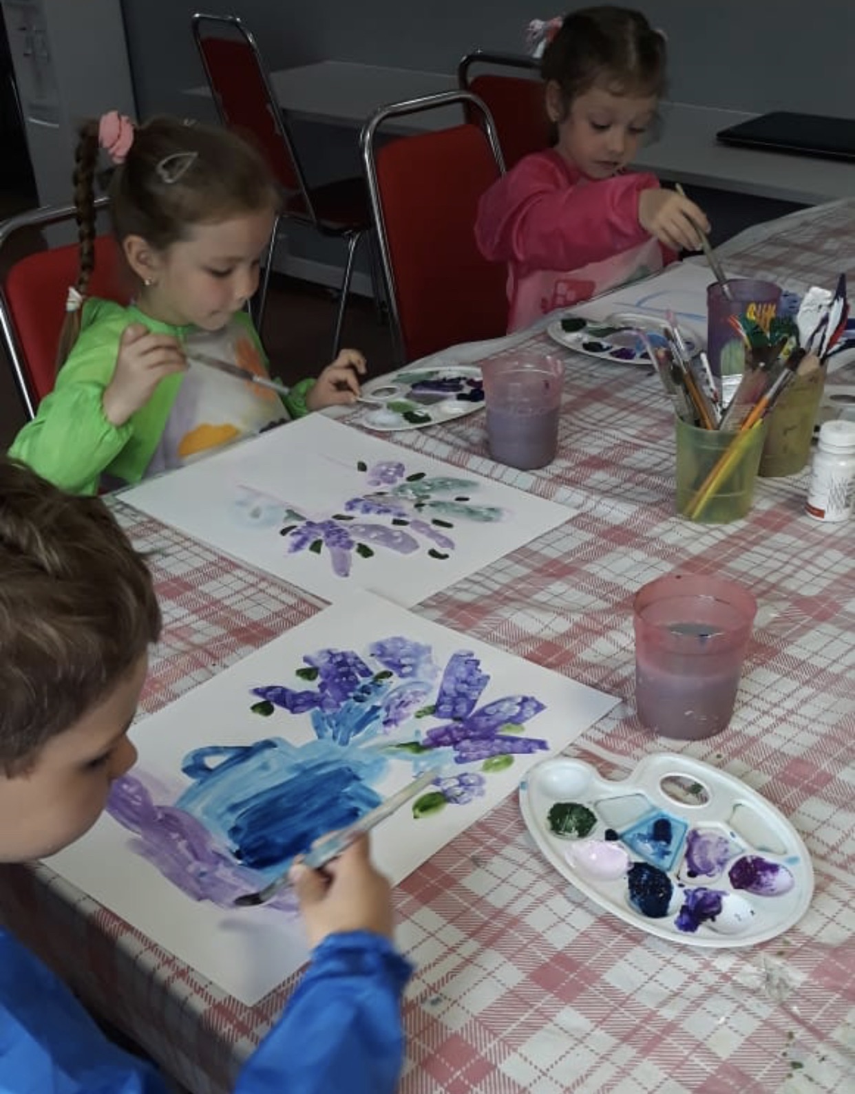 Для малышей с 4х до 7 лет лепка в 10:00, рисование в 11:30