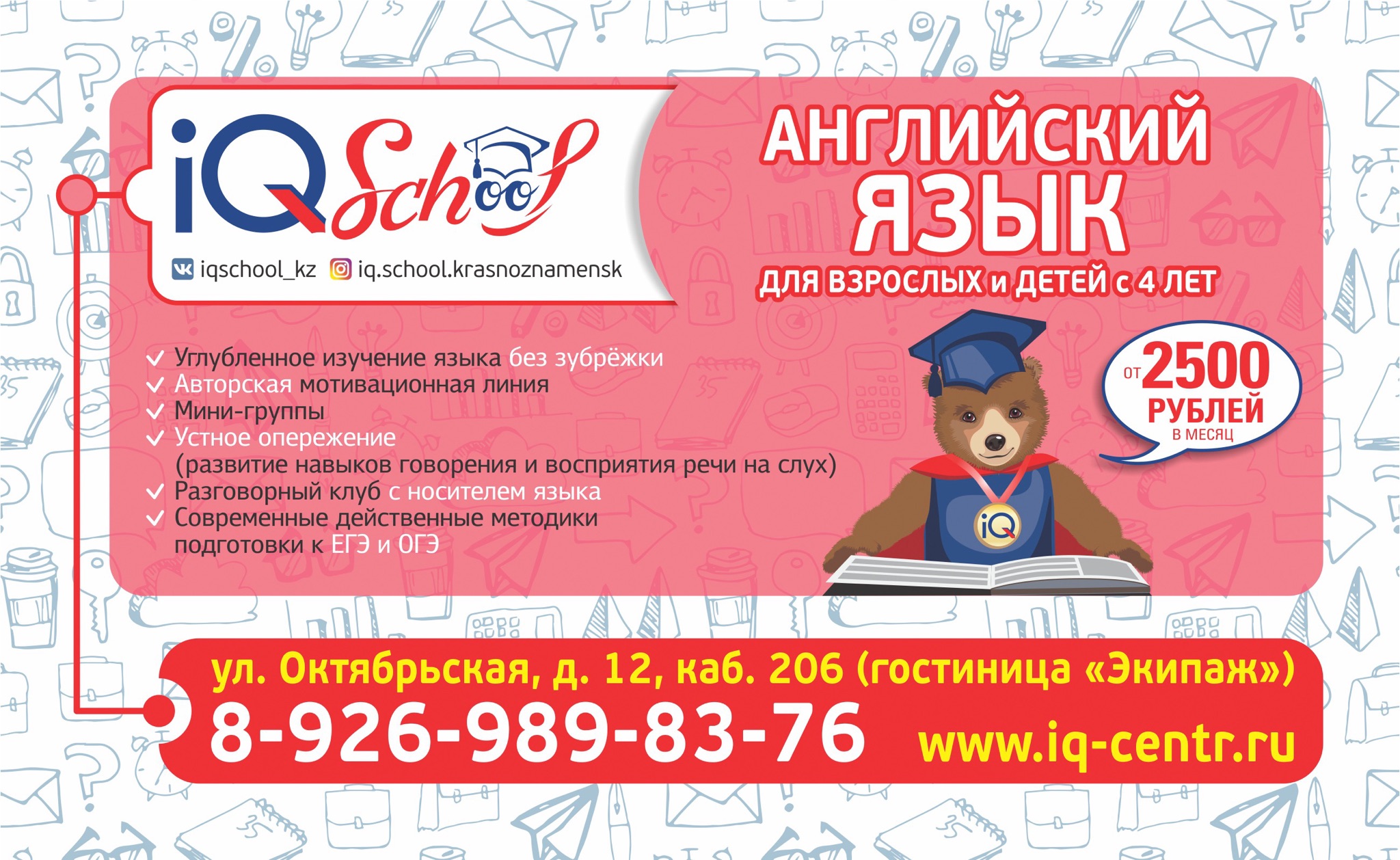 Студия английского языка “iQ-School” в городе КРАСНОЗНАМЕНСК объявляет набор на новый учебный год.