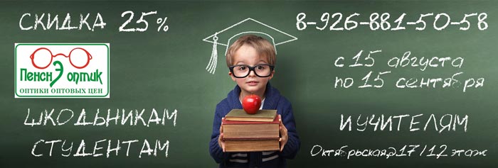 С 15 августа и до 15 сентября очки из детских и подростковых коллекций продаются со скидкой 25%