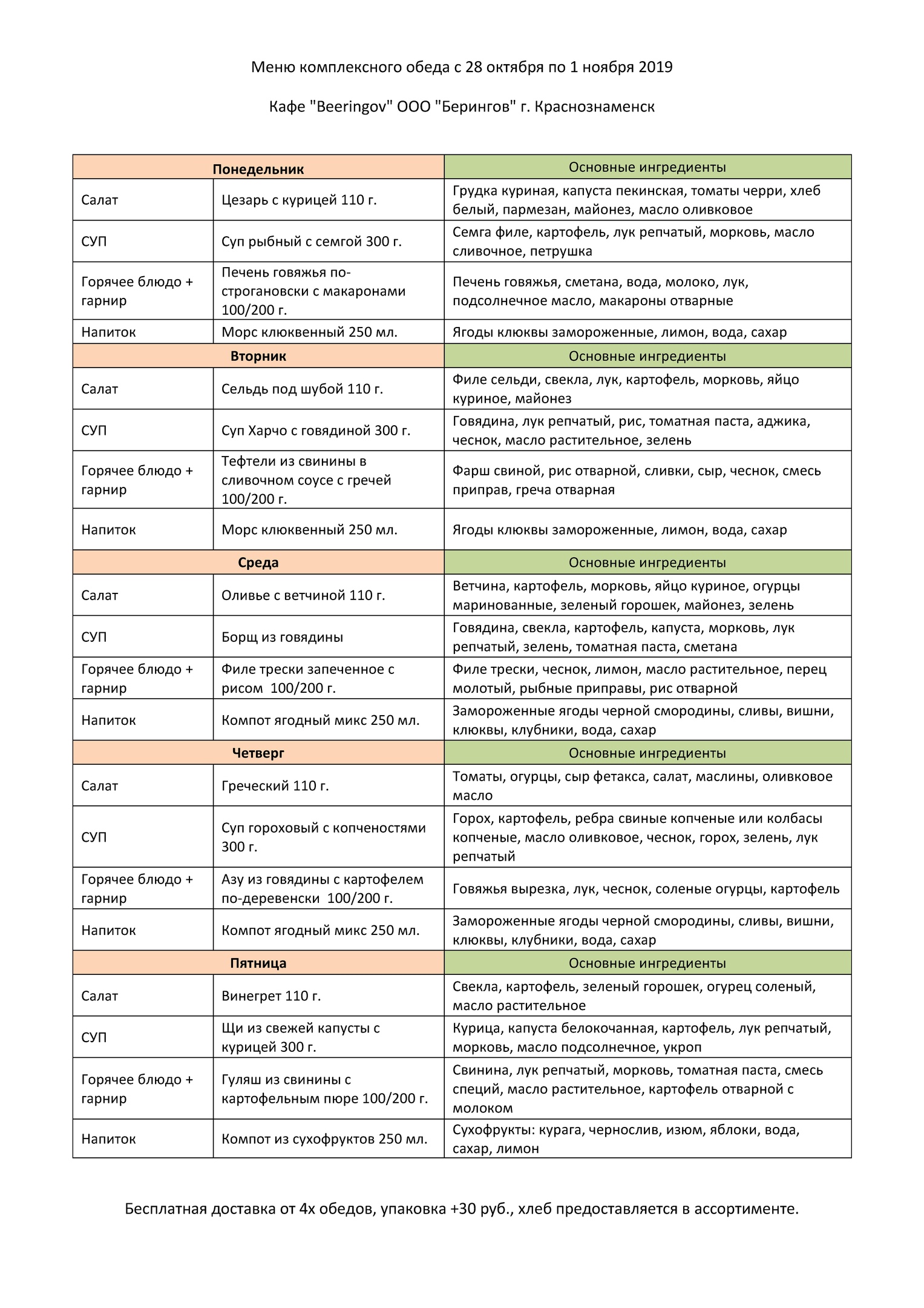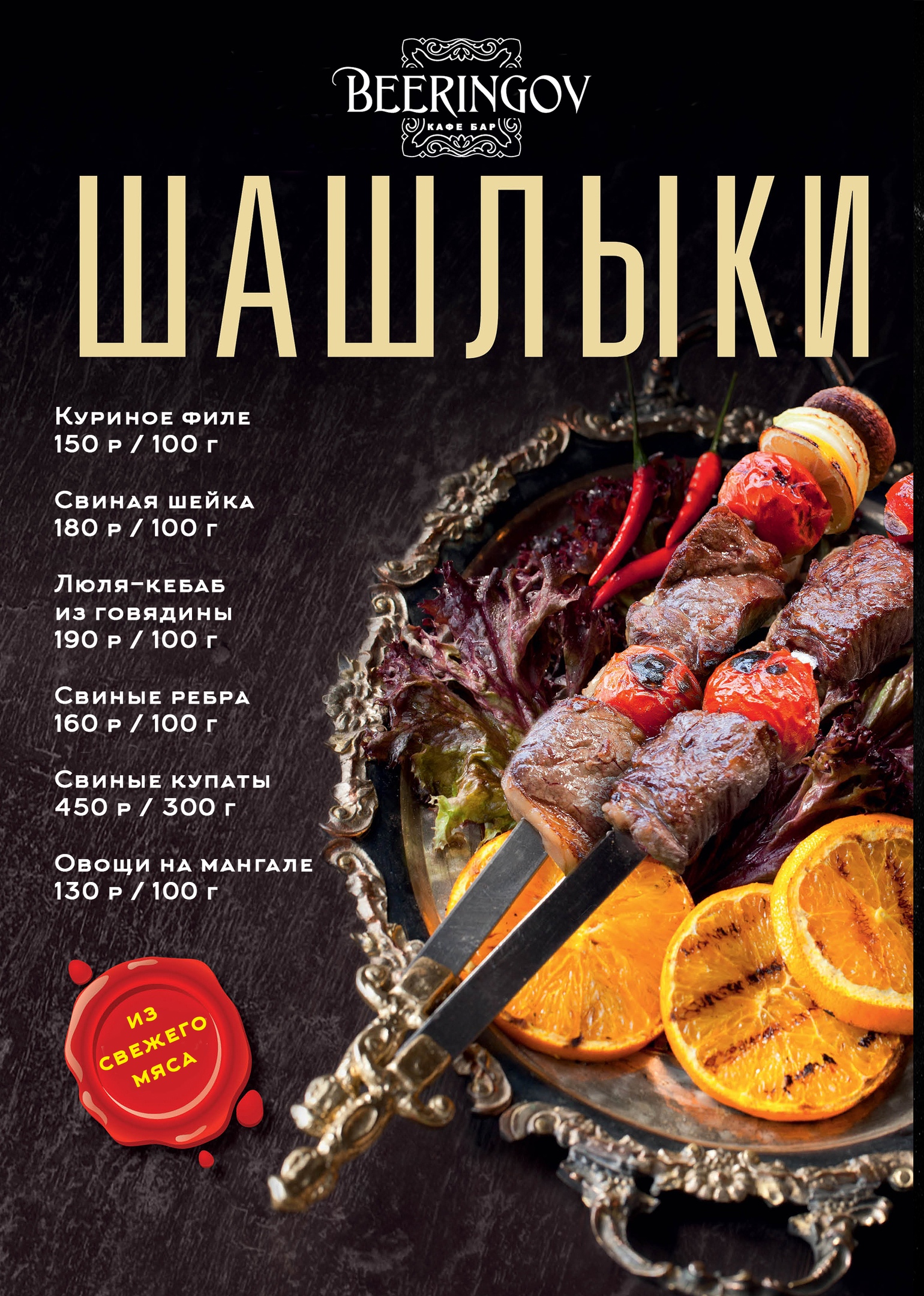 С актуальным меню Вы можете ознакомиться на нашем сайте и торговых точках Beeringov по адресам: Мира 11 «Пятерочка» и Мира 17а «Магнит»