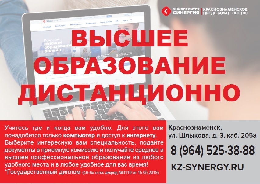 Дистанционное высшее образование в Краснознаменске. Бакалавриат, магистратура.