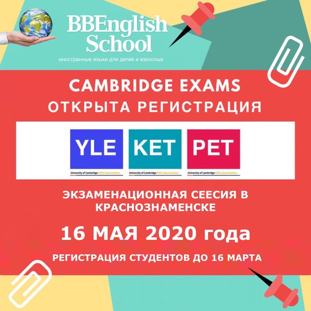 BBEnglish School является сертифицированным центром подготовки к Кембриджским экзаменам. Ежегодно мы предоставляем возможность пройти тестирование и получить международные сертификаты не только нашим студентам, но и учащимся других учебных заведений Краснознаменска и близлежащих городов.