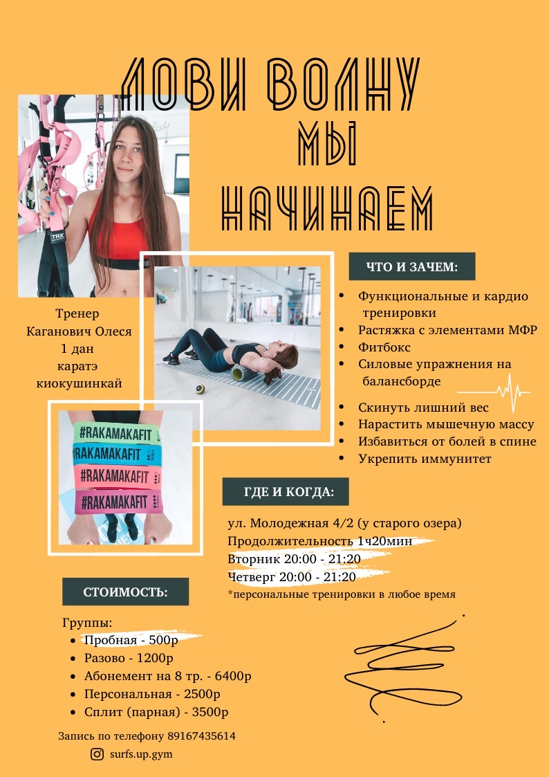 Также доступны персональные и сплит тренировки с элементами бокса и с силовыми упражнениями на балансборде!