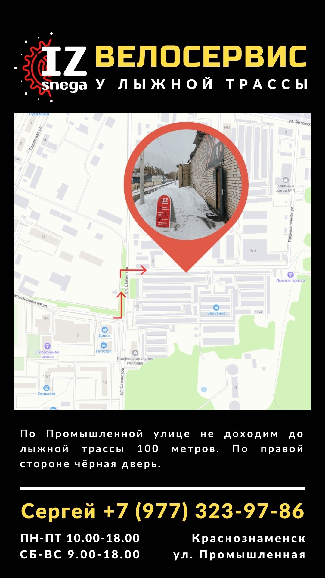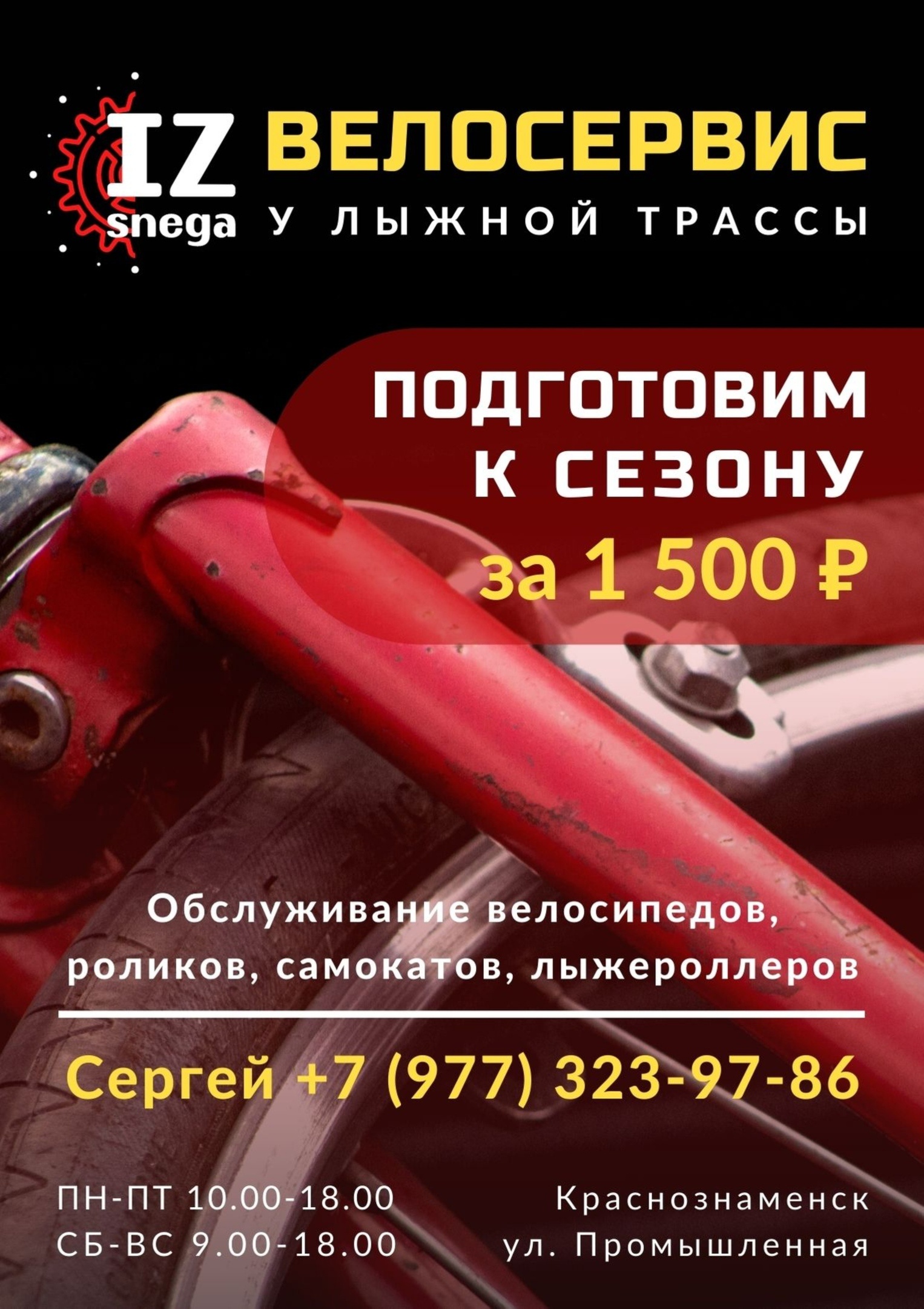 Комплексное ТО велосипеда всего за 1500р! Кроме того, если вам необходима помощь в транспортировке велосипеда на ТО, то у нас работает доставка! По Краснознаменску она будет стоить (до мастерской и обратно) - 350р.
