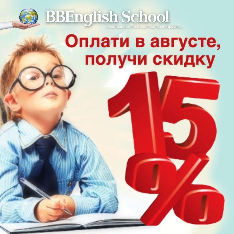 При записи и оформлении договора в августе СКИДКА 15% на занятия в сентябре! Подробности Акции на нашем сайте в разделе новости: www.bbenglish.ru Английский, Китайский, Немецкий, Французский, Испанский, Японский, Корейский языки