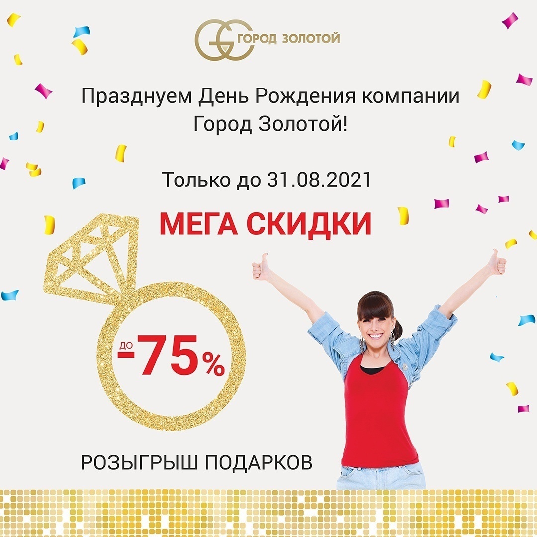 Только до 31.08.2021 у тебя есть уникальный шанс воспользоваться максимальной скидкой до - 75% в розничной сети Город Золотой.