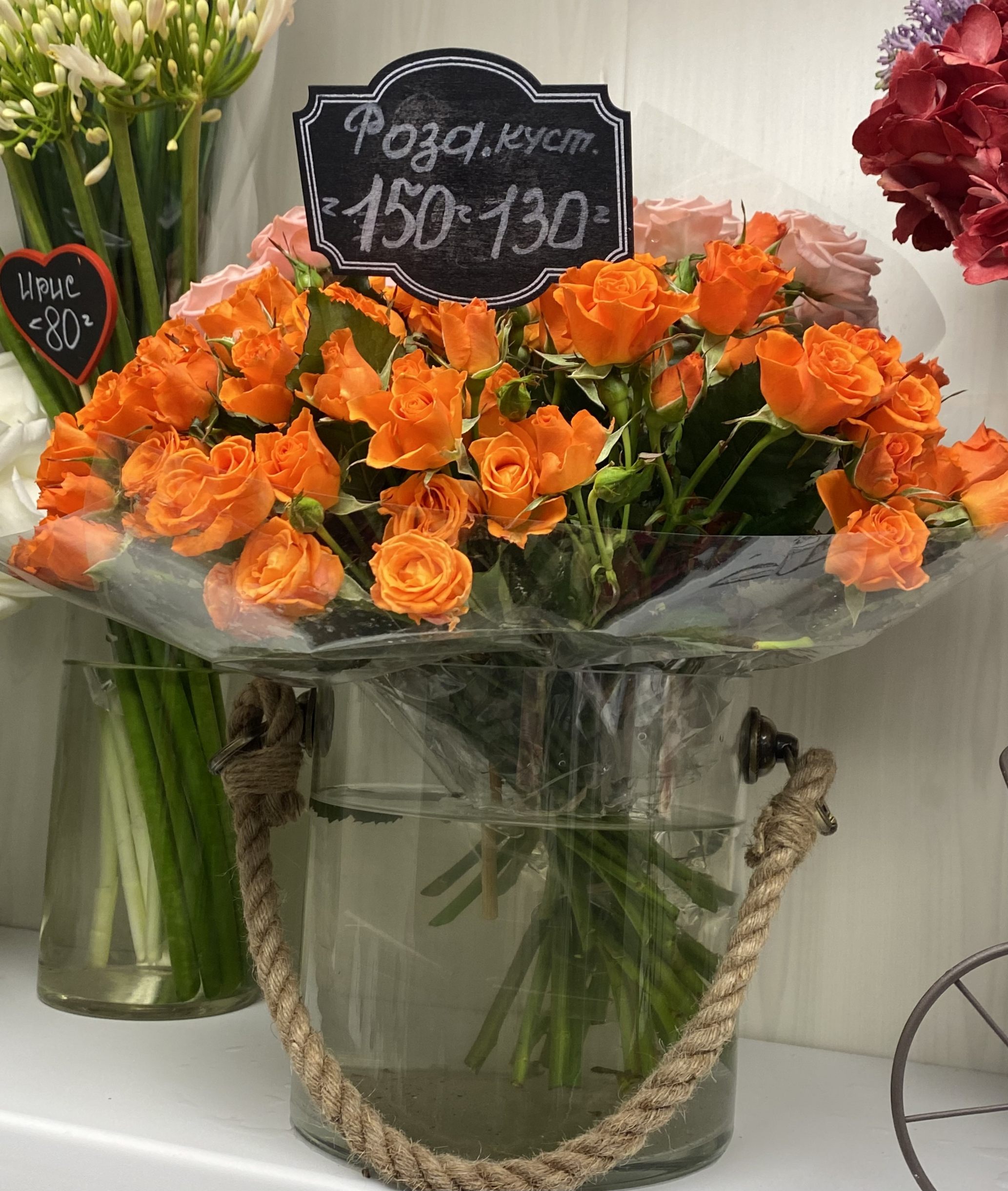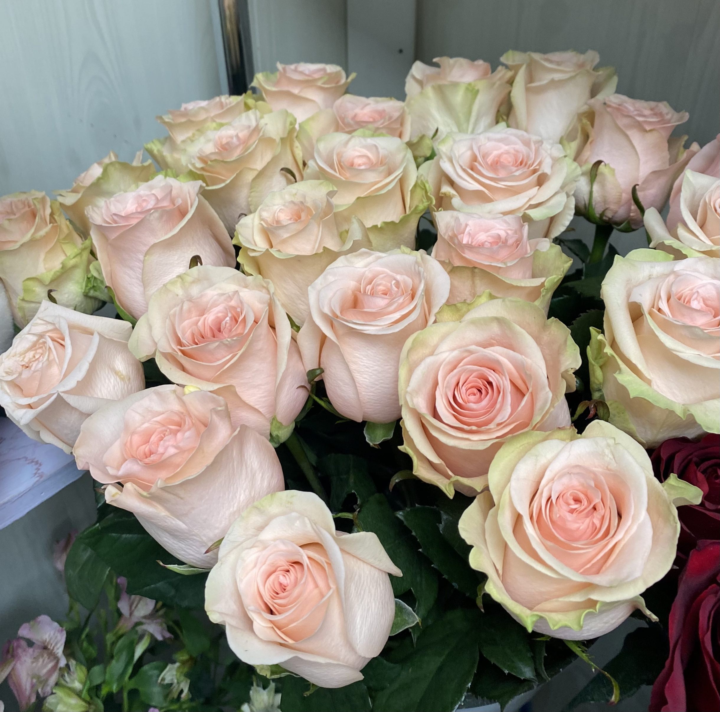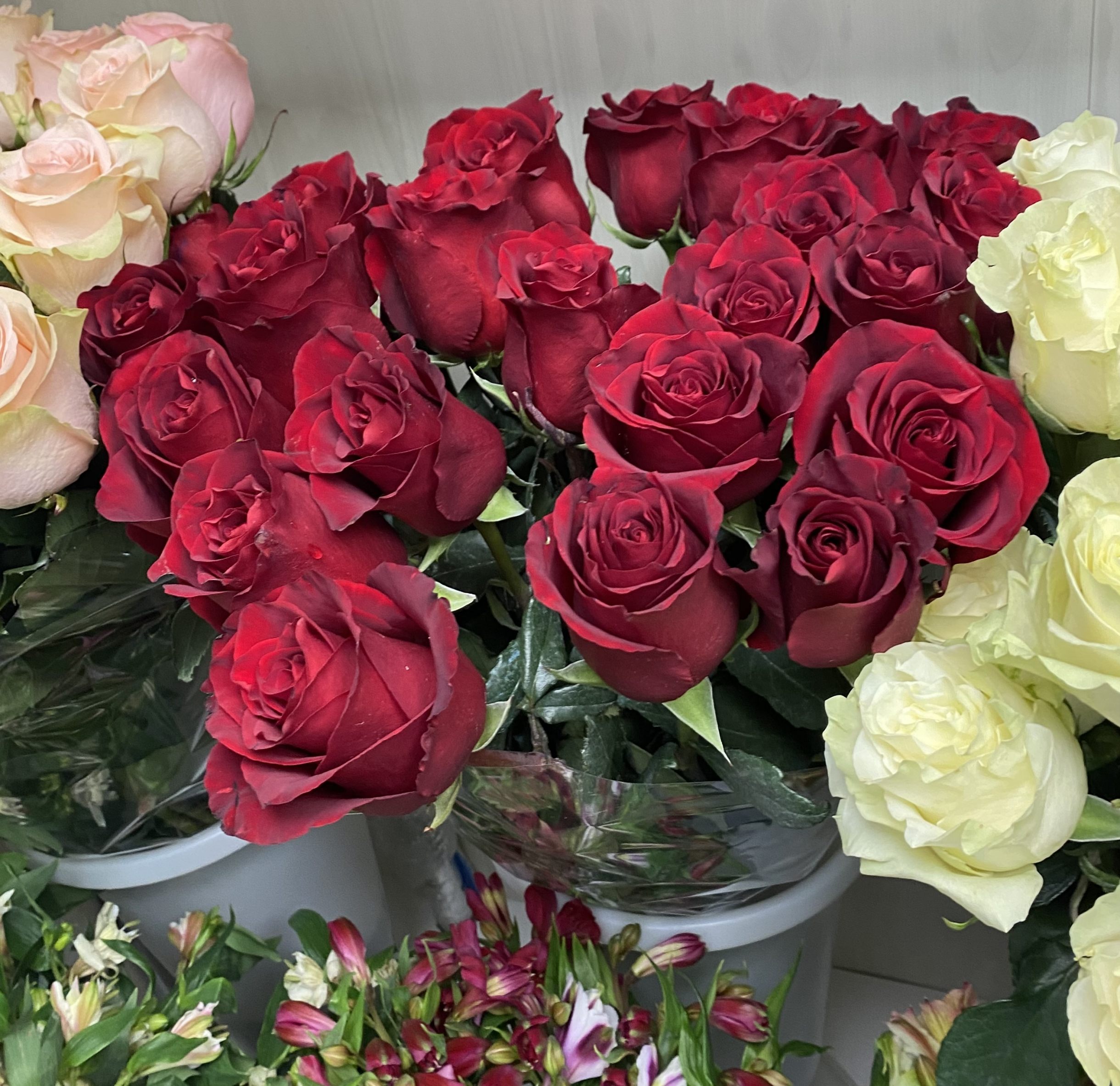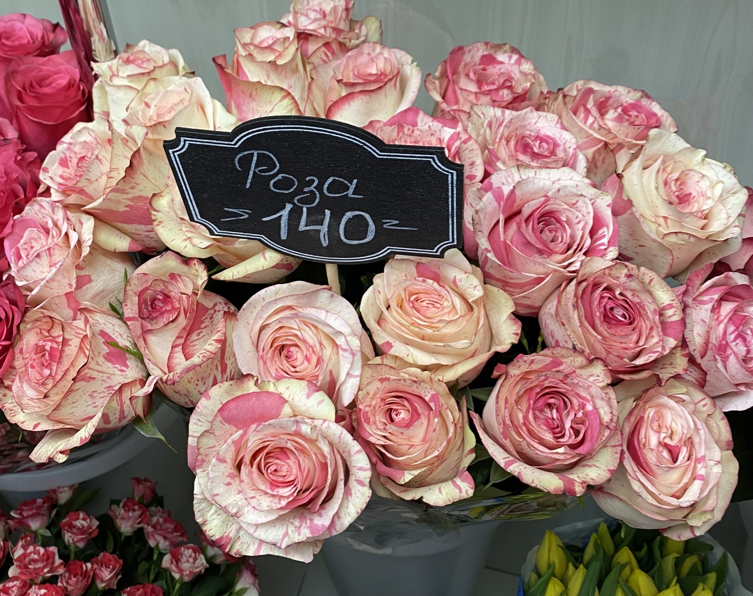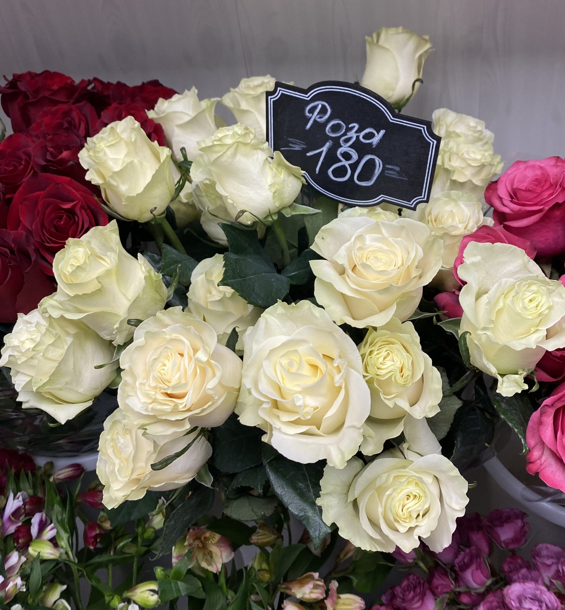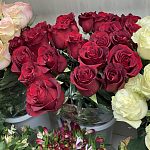 Роза Эквадор от 100 рублей, Гербера 100 рублей, Альстромерия 100 рублей.