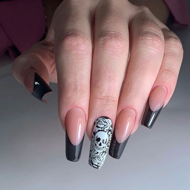 Наращивание с дизайном, выкладной французский маникюр, маникюр с дизайном.