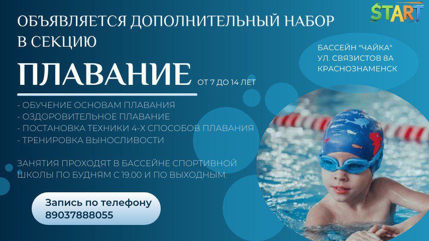Открыт дополнительный набор детей 7-14 лет в секцию плавания школы «START»