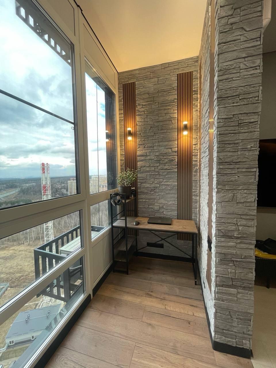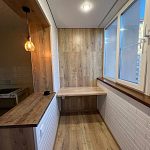 Заменить остекление, утеплить, провести отделочные работы, установить встроенную мебель