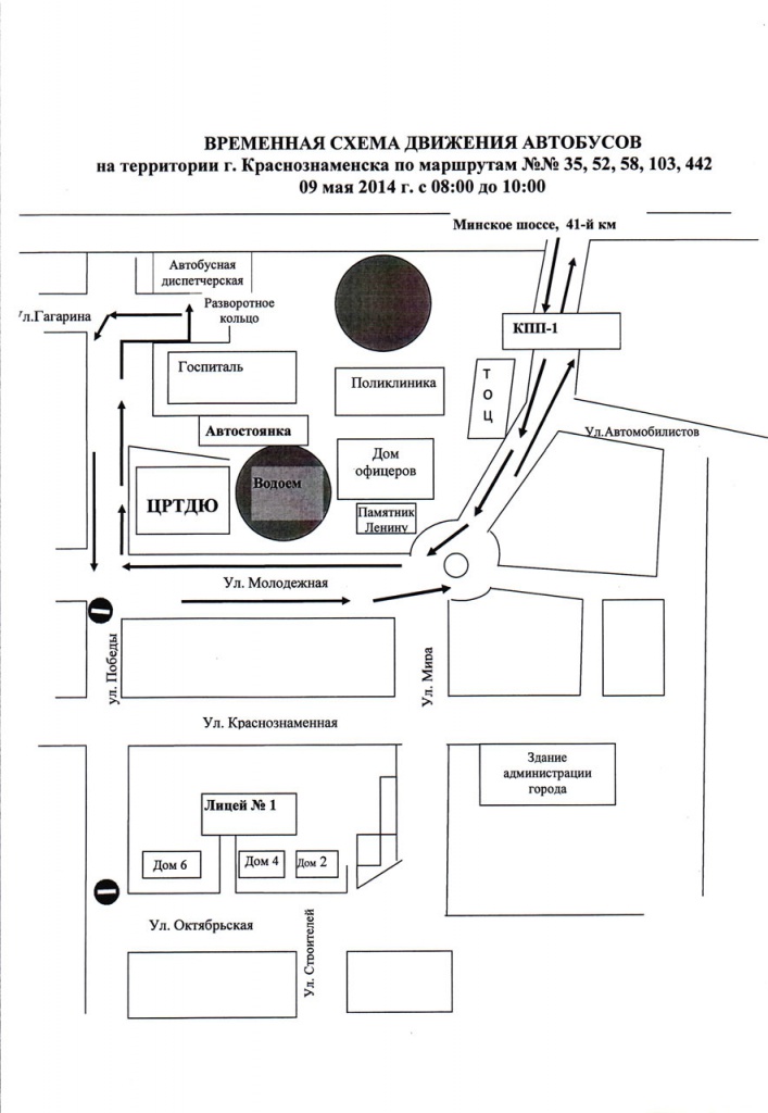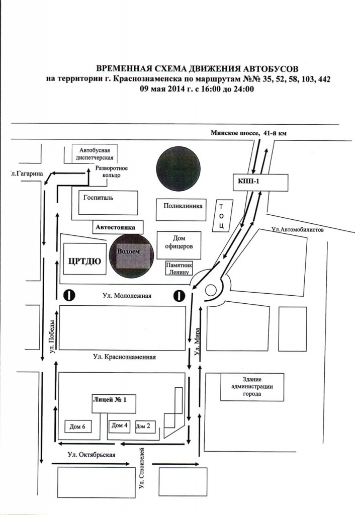 9 мая 2014 года будут введены временные схемы движения общественного транспорта по территории города Краснознаменска.