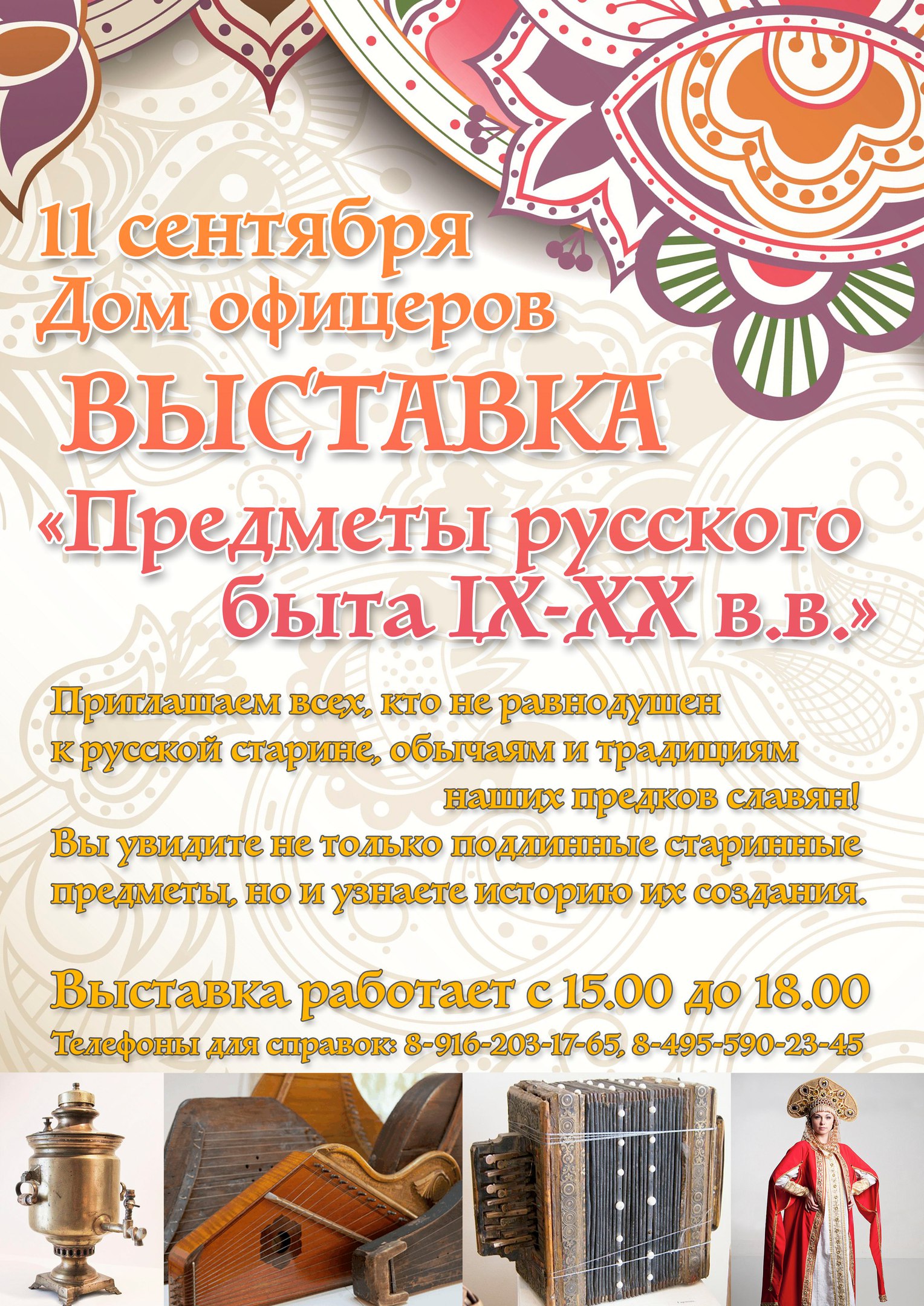11 сентября в Доме офицеров пройдет выставка «Предметы русского быта IX - XX в.в.»