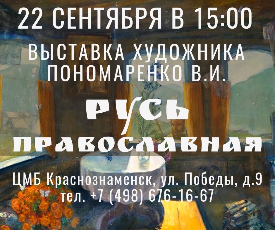 Приглашаем в Библиотеку Краснознаменска на встречу с художником Пономаренко В.И. и презентацию выставки!