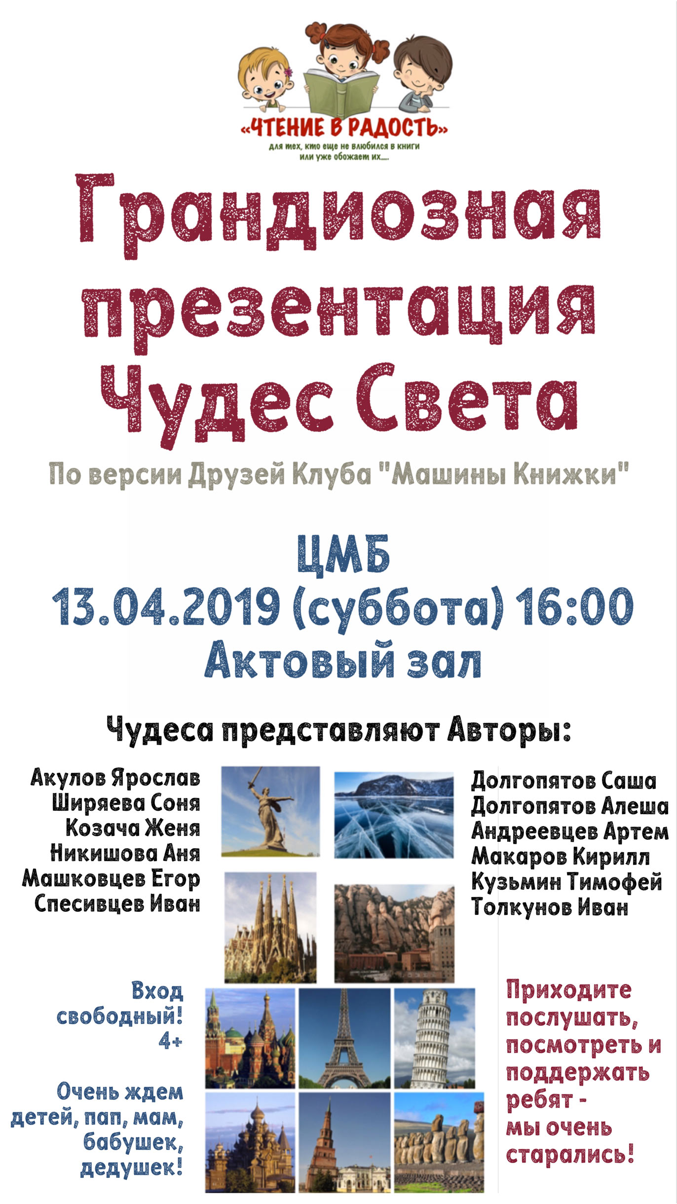 Приглашаем вас на нашу открытую презентацию Чудес Света по версии нашего Клуба!