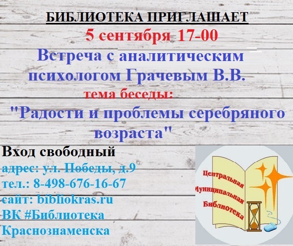 Библиотека приглашает 5 сентября на встречу с психологом В.В.Грачевым!