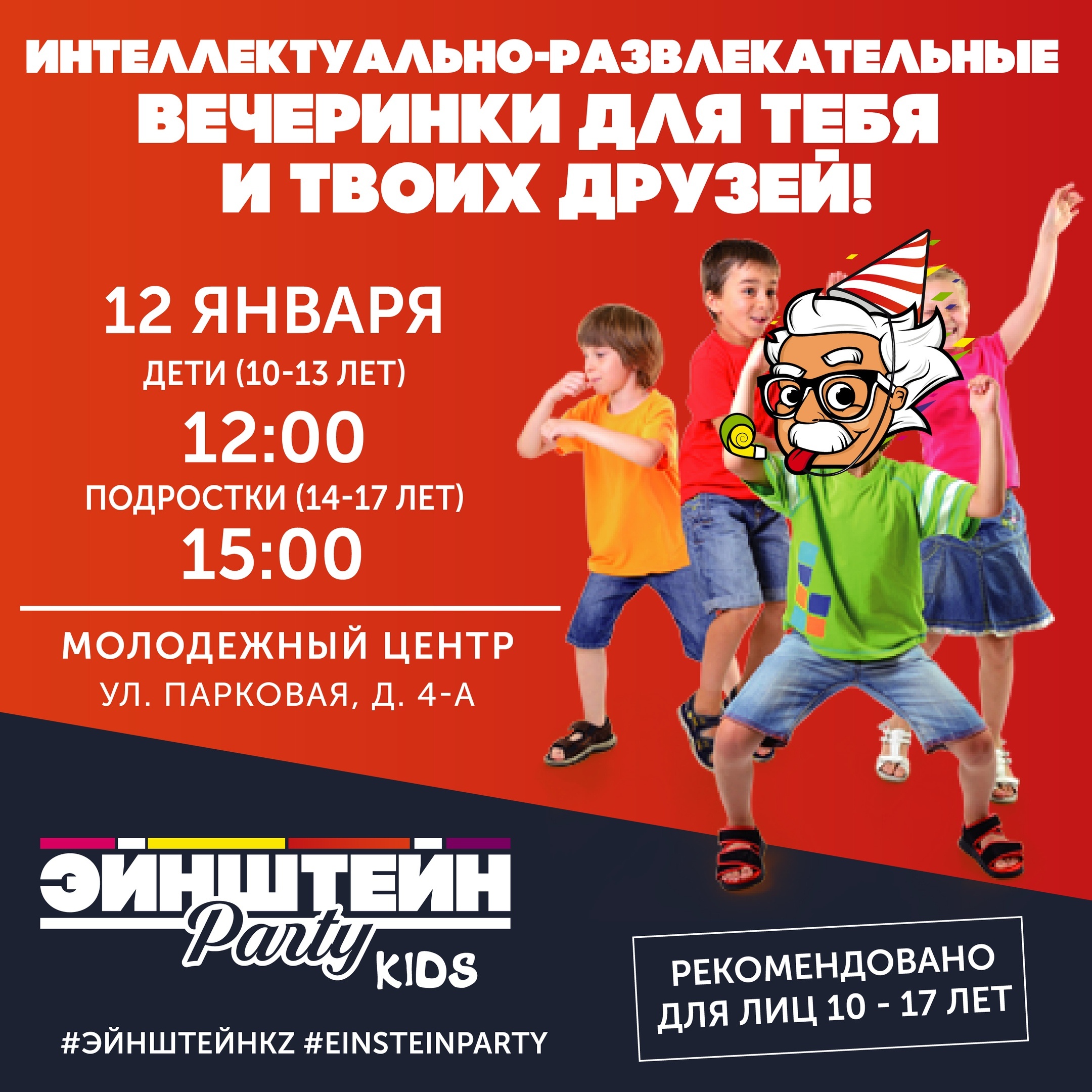 Гениальнейший и остроумнейший Альберт Эйнштейн бросает вызов школьникам нашего города и приглашает на интеллектуально развлекательные поединки ЭЙНШТЕЙН PARTY.