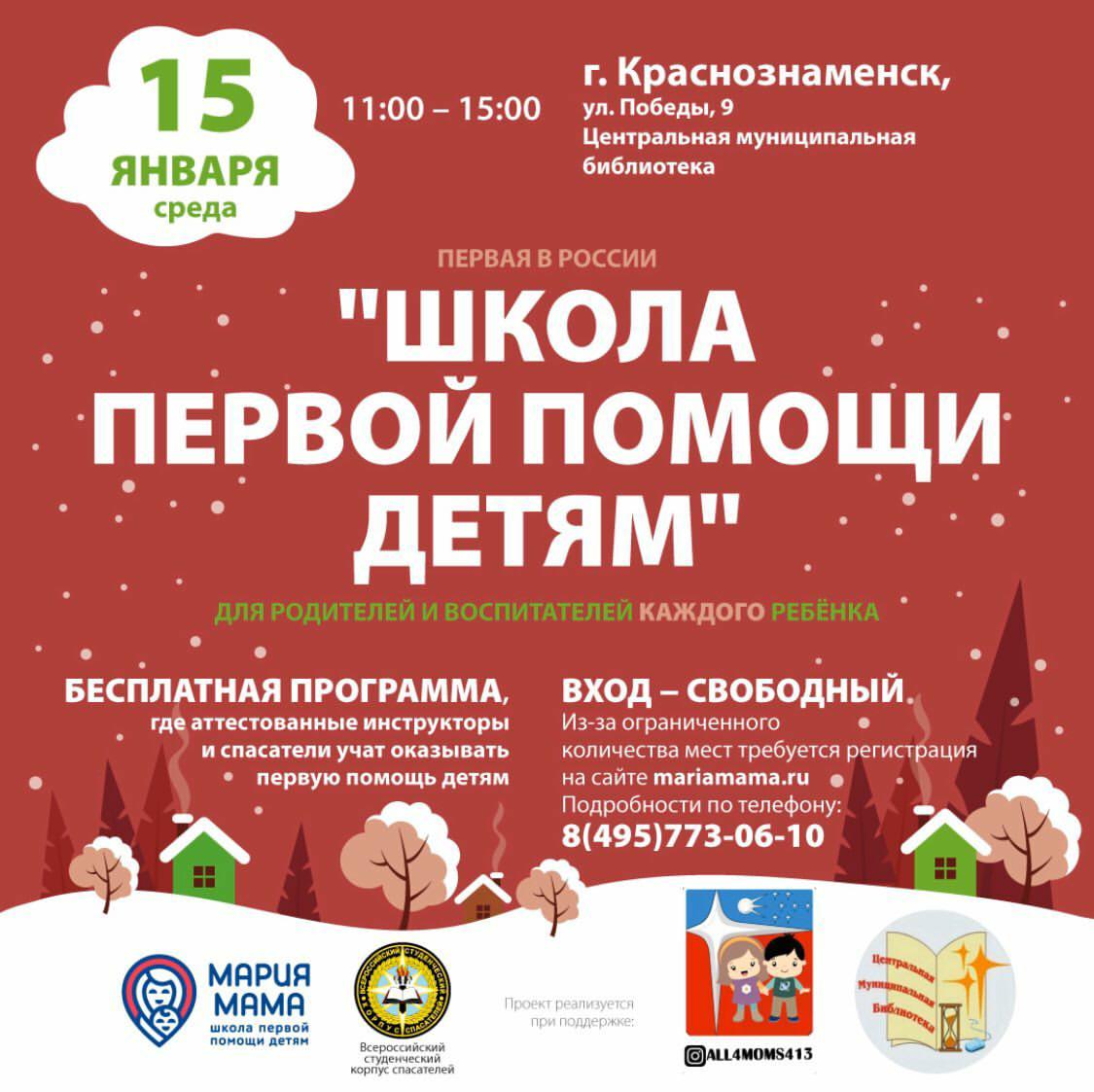 Приглашаем в библиотеку 15 января в 11-00 в "Школу первой помощи детям".
