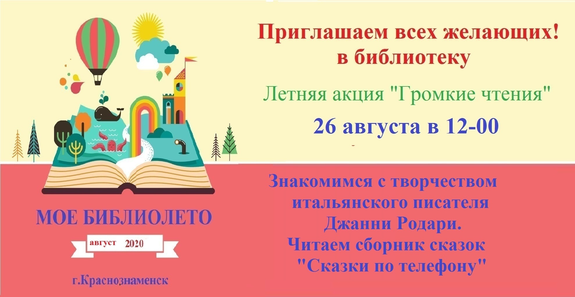 26 августа в 12:00 приглашаем на акцию "Громкие чтения" . Знакомимся с творчеством итальянского писателя Джанни Родари. Читаем сборник сказок "Сказки по телефону".
