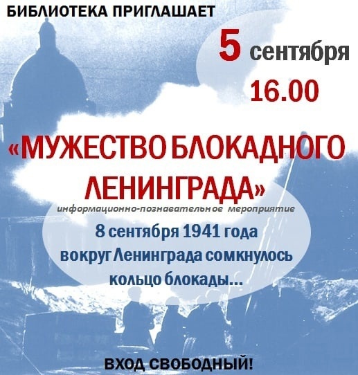5 сентября в 16.00 в библиотеке состоятся мероприятие, приуроченное к дате начала блокады.