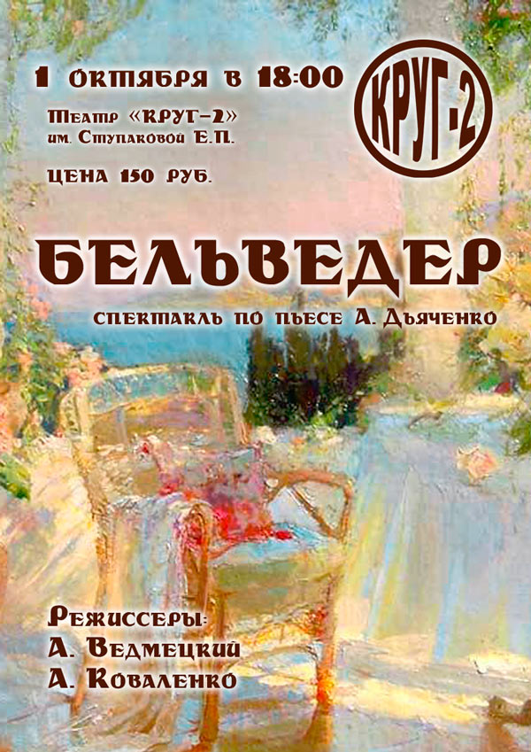 1 октября(суббота) в 18:00 в МЦ Театр "КРУГ-2" представляет: "Бельведер"