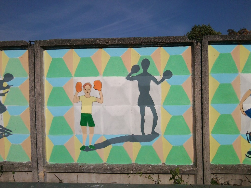Теперь забор напротив ДЮСШ невозможно назвать скучным – яркие краски, используемые художниками, и разнообразие представленных видов спорта создают проходящим и проезжающим мимо ДЮСШ праздничное настроение.