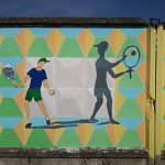 Кстати, на заборе нашли отражение все виды спорта, преподаваемые в спортивной школе.