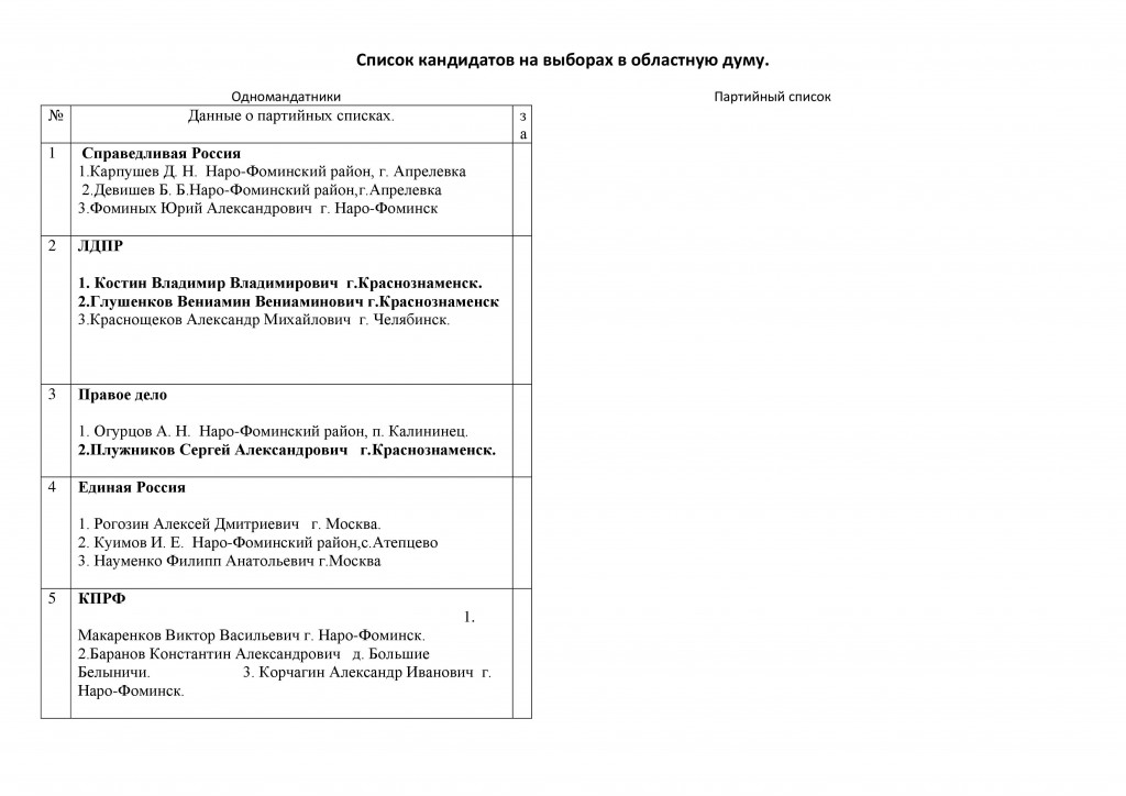 Кандидаты в депутаты Московской областной Думы по избирательному округу №12 (по партийным спискам и по одномандатным округам)
