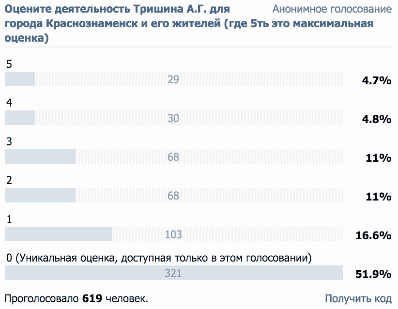 Оцените деятельность Тришина А.Г. для города Краснознаменск и его жителей (где 5ть это максимальная оценка)