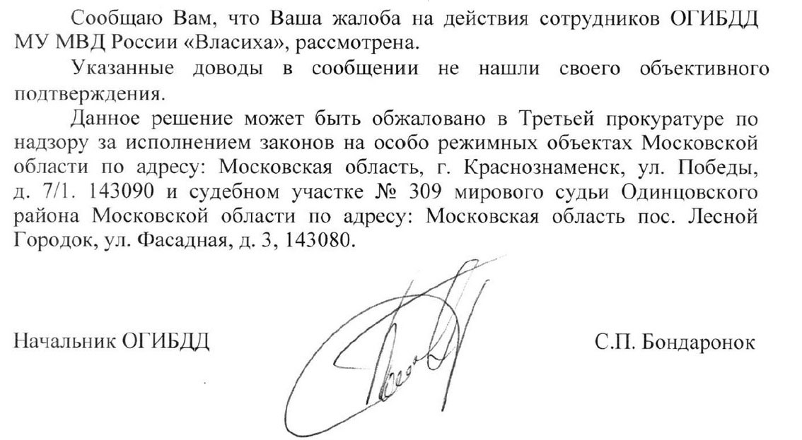 В ответ на заявление было получено - "Указанные доводы в сообщении не нашли своего объективного подтверждения". Я не знаю, как нужно было бы объективно зафиксировать свои доводы, но видимо тут есть какая-то магия.