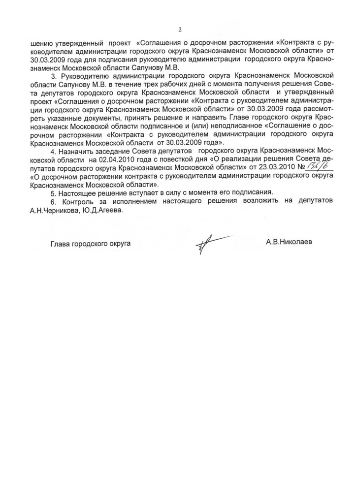 о досрочном расторжении контракта с руководителем администрации городского округа Краснознаменск Московской области Сапуновым М.В.