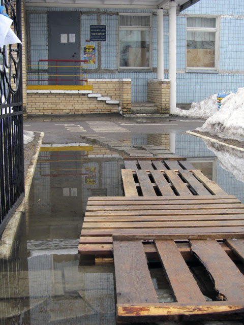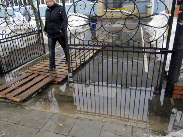 Лично я считаю, что нужно наоборот сказать спасибо Руководству Детского сада зато что нашли выход из данной ситуации и положили на входе деревянные поддоны. Без них было бы пройти не возможно. Если вы можете предложить решать такие вопросы иначе, то я думаю, Вам будут рады и в "А" и в "Б".