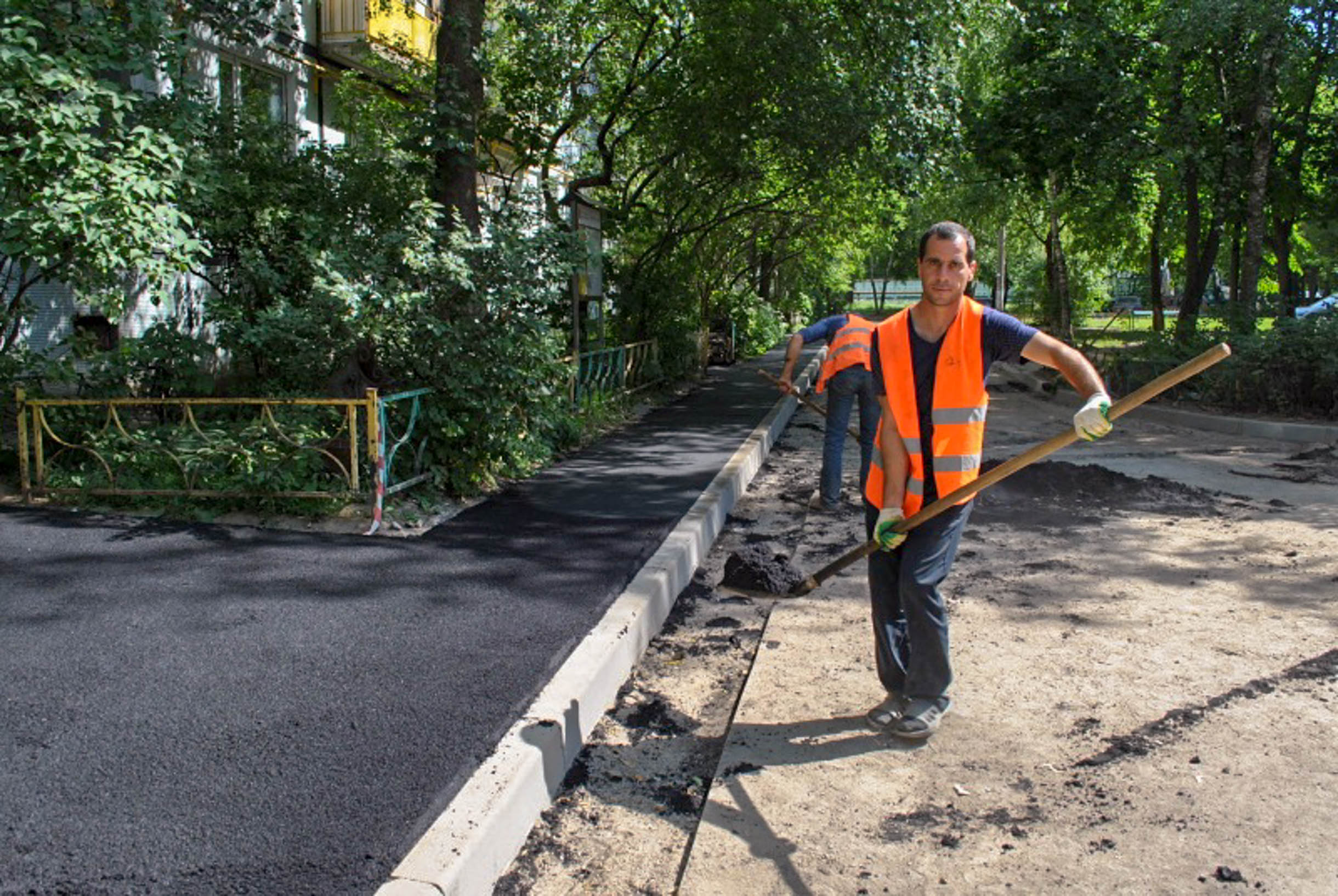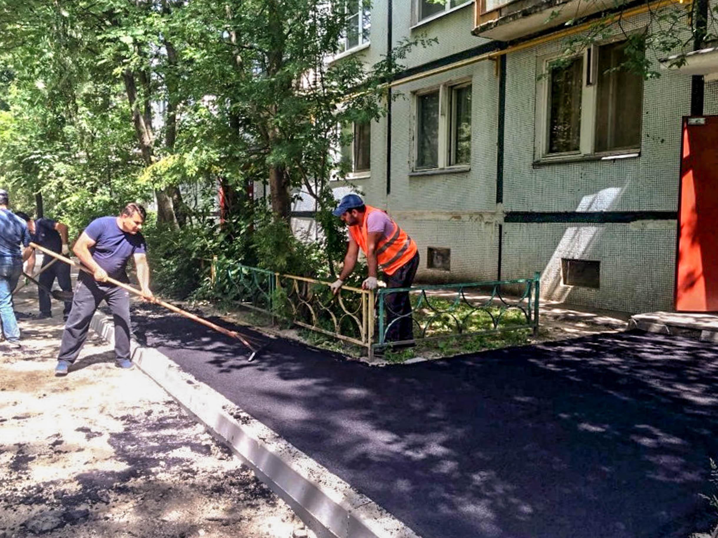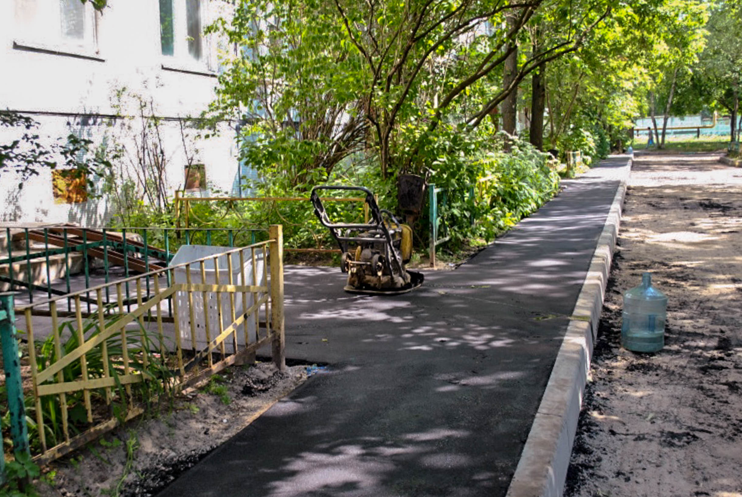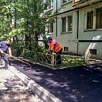 Производится плановая замена асфальтового покрытия пешеходных тротуаров и внутридворовых дорог.