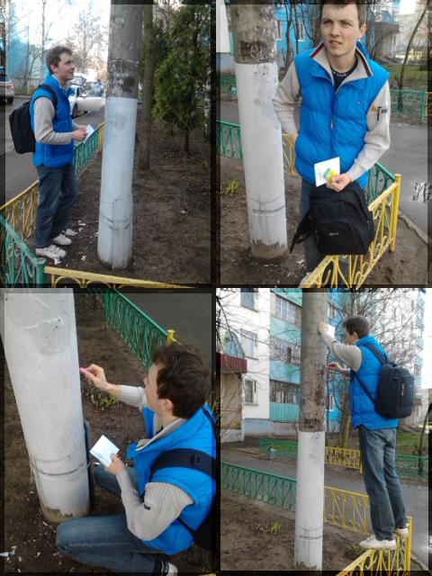 И кстати, почему мелками а не краской? Не уже ли на это нужно разрешение властей? Ведь серый столб однозначно скучен и неинтересен.