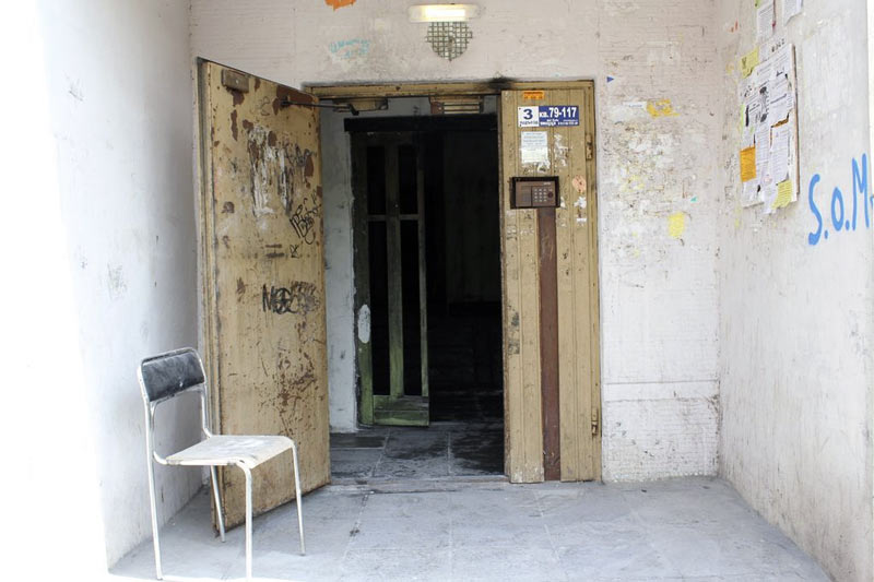 На 26 апреля 2012 года (спустя 2 недели после пожара) состояние подъезда "оставляет желать лучшего":