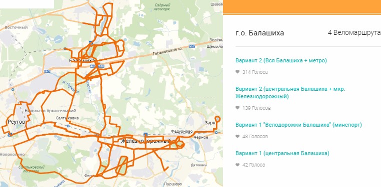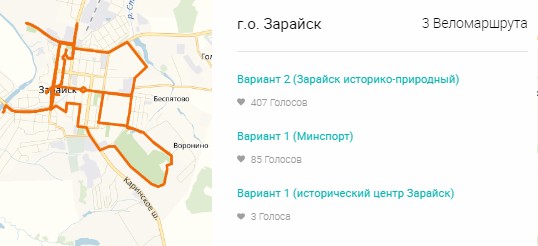 За финансирование велодорожек из областного бюджета идёт упорная борьба между муниципалитетами, важен каждый проголосовавший. Например, проекты Зарайска и Балашихи собрали сотни голосов: